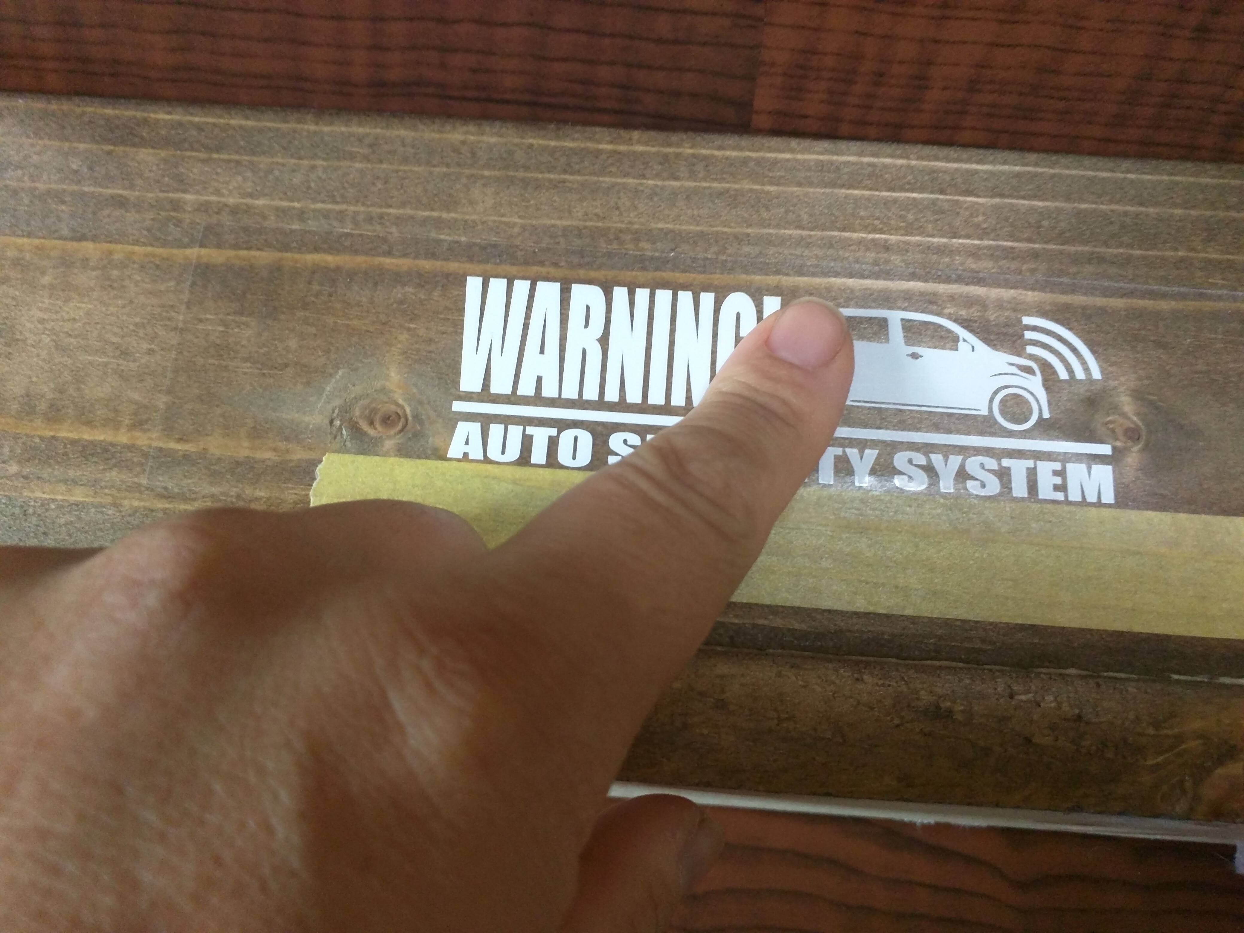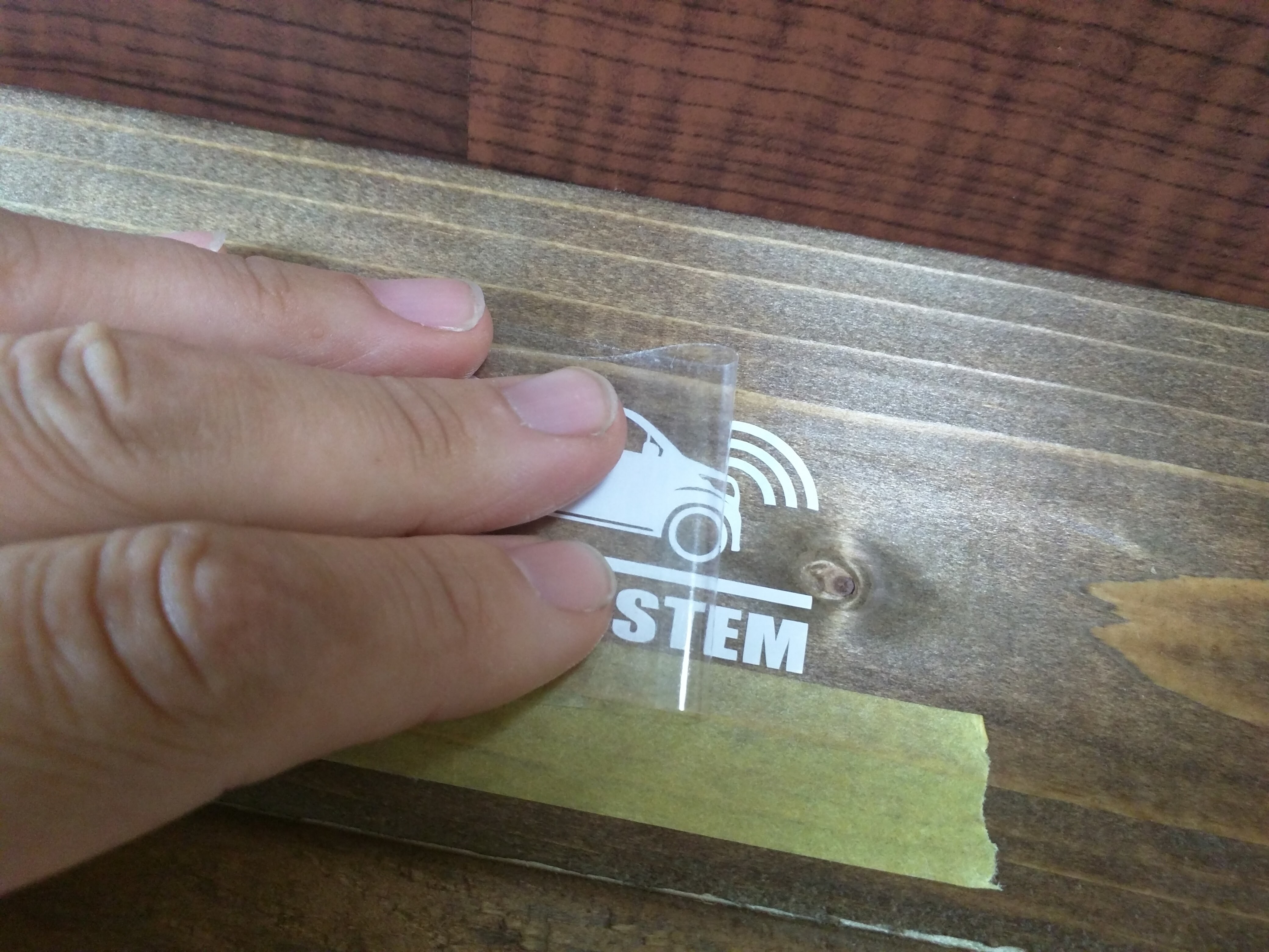 マスキングテープの位置が決まったらステッカーをマスキングテープ上に添わせるように貼ります